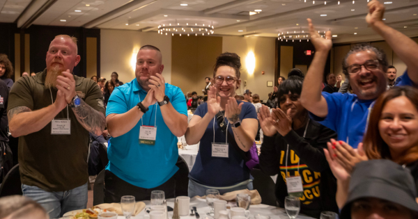 Speaking to the Convention on Friday night, O’Brien emphasized achievements over the last five years, including: stronger contracts, $1,000 weekly strike benefits starting day one, majority rule on contract votes, coordinated bargaining, organizing, and more.